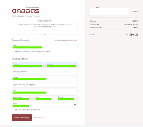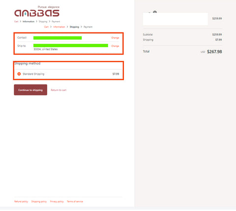 Step1:Enter the payment page, fill in your email address and shipping information. (You may skip this step if you have already logged in and finished information submission.)